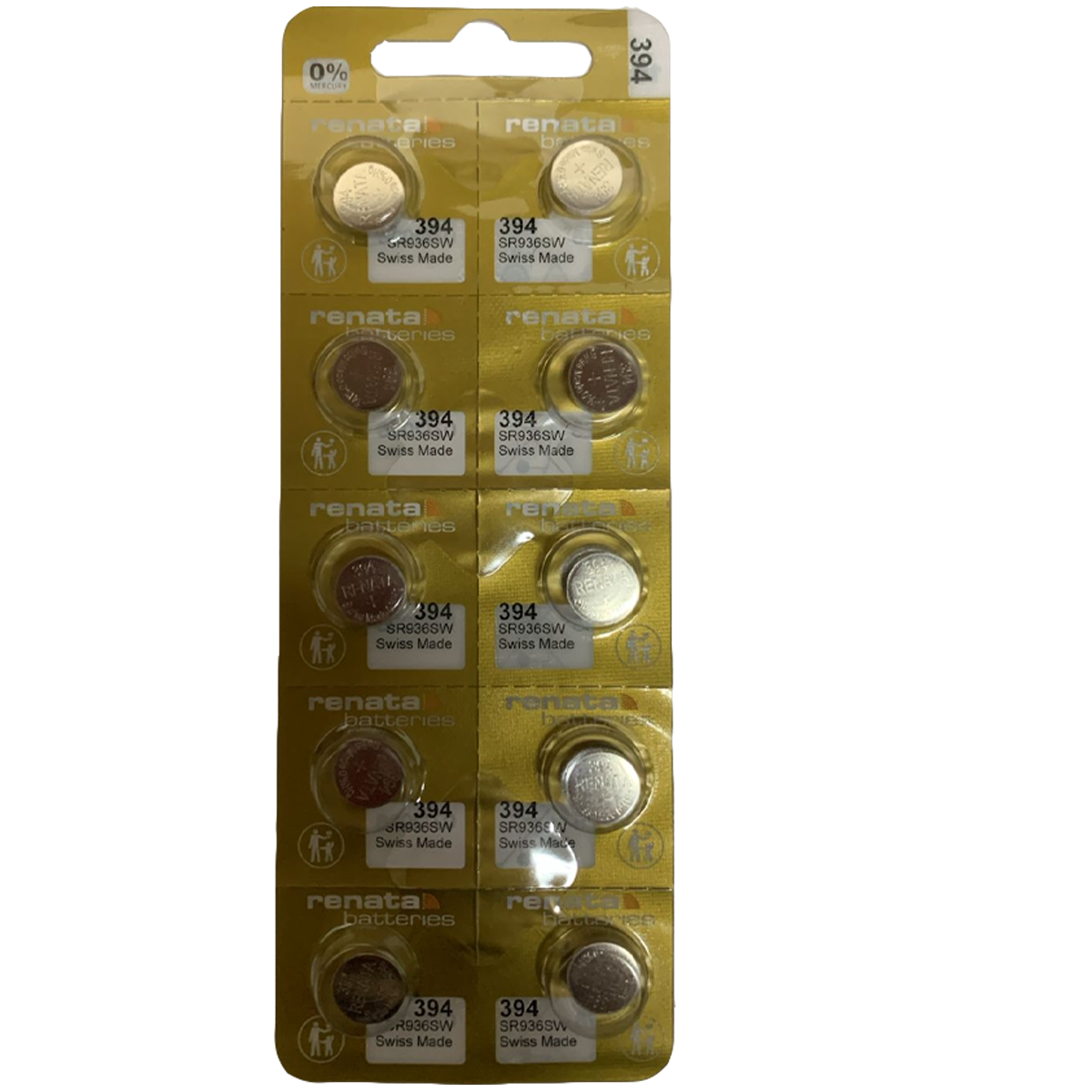 394-GSW-BATERIA RENATA DORADA OXIDO DE PLATA 60 %MAS DURACION BL X 10 ( 936 ) cantidad