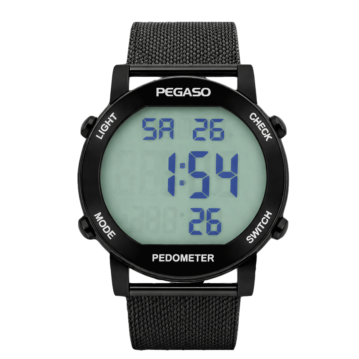 → P2401BK-RELOJ PEGASO DIGITAL ILLUMINATOR ACERO MALLA PAVONADO-M0101